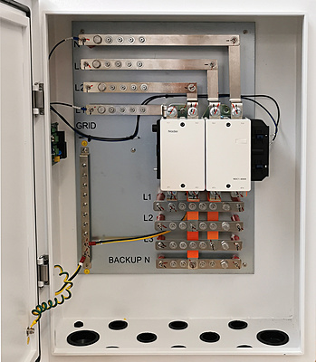 Om de G3-H30 in een parallel setup in te kunnen zetten als noodstroom systeem is deze Backup Box noodzakelijk. De maximale toelaatbare stroom is 400A.